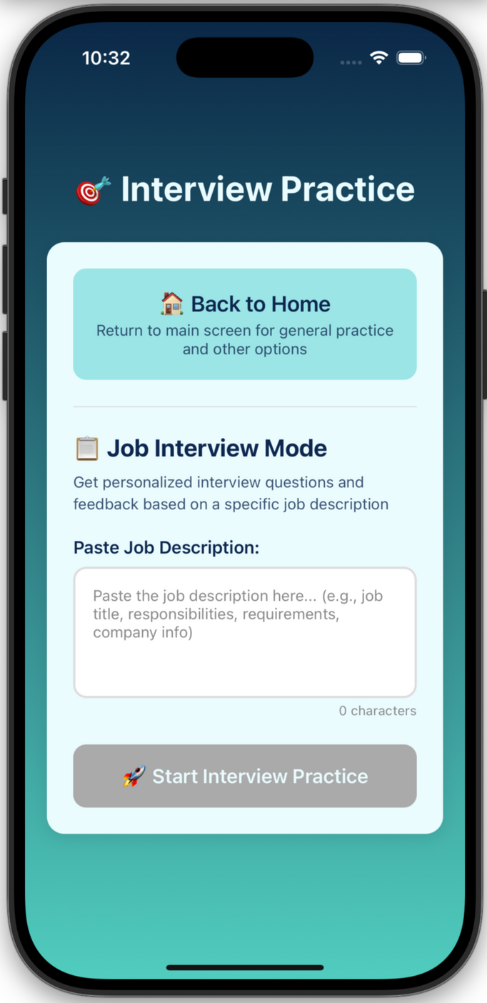 For interviews, paste the job description and Sentio will tailor questions to the role.